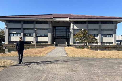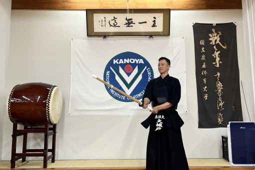鹿屋体育大学の武道場は、キャンパス内北側にどっしり構え、初めて入ると圧倒されるほど広く、天井が高く、床や畳が美しい壮大な空間です。二階にある剣道場で稽古が始まると、静寂の中で竹刀が交わる音、気迫ある掛け声、まるで映画のワンシーンのような迫力があります。