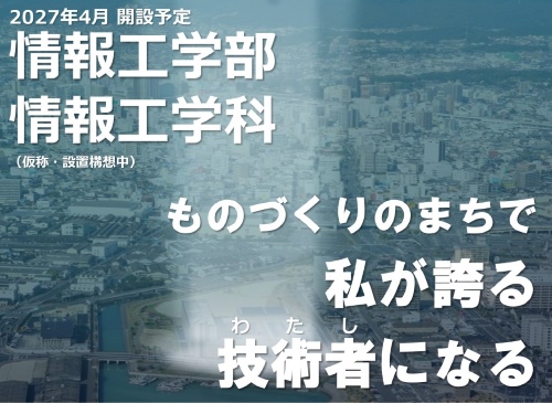 情報工学科【デジタルものづくりコース/サイバーセキュリティコース】*(80名)新設*仮称・設置構想中。2027年4月開設予定。