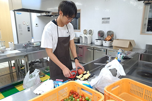 例えば八戸市と共同で、地元産のりんごやミニトマトなどを使い、健康とまちのにぎわい創出をテーマに商品を企画・販売した「オリジナルスムージー開発」。材料の一部には規格外品を活用しました。また、「木の駅プロジェクト体験」では、山林での林業体験を通して、地域資源の循環や地域通貨について学習。自治体や地域団体の方々と協働しながら、地域の仕事や課題を身近に感じる貴重な機会となりました。地域と関わり合いながら学修を進めることで、実社会で役立つ力を身に付けられるのが、本学部の大きな魅力です。