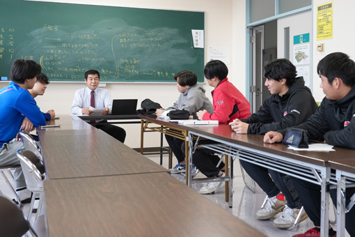 本学がめざすのは、地域を支える人材の育成です。地域経済論では、現代の地域経済の実状を正しく理解し、地域を支える人々の輪を拡げていく力を養います。経済や地域課題について学ぶことで、銀行、市役所・消防・警察などの公務員、教員、商社、医療・福祉分野、スポーツ関連企業など、多彩な分野で力を発揮できるのが特徴です。