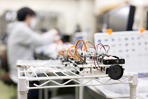 石巻専修大学には、プログラミングだけでなく、電子機器を実際に使って学べる設備が充実しています。中でもお気に入りなのは、マイコンやセンサ、ロボットを使って実験できる実習室です。