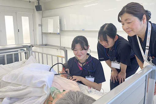 医療創生大学では、東日本大震災発生時に現場で看護活動をしていた先生方による、経験に基づいた質の高い災害看護の講義を受けられる点に魅力を感じました。また、実習カリキュラムが充実しており、1年次から病院実習が始まるため、患者さんと関わる機会が多く、看護学生としての自覚が高まる点も、進路を選択する上で決め手になりました。