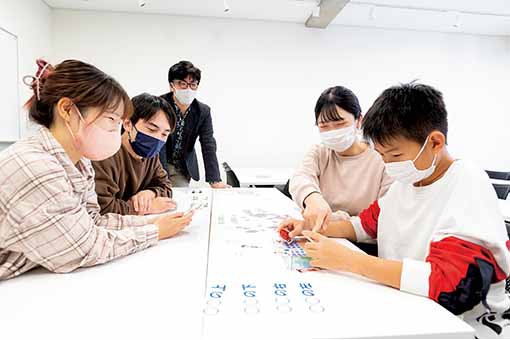 児童教育コースでは、日立市教育委員会と連携し、小学校で学生が教師のアシスタントとして学習・教育実習をサポートする活動を行っています。また、県内私立大学として唯一の特別支援学校教諭一種免許状が取得できる課程があり、「特別支援学校」教員としての採用に加え、各学校に配置されたさまざまな障がいのある子どものための「特別支援学級」教員として活躍できる道も広がっています。