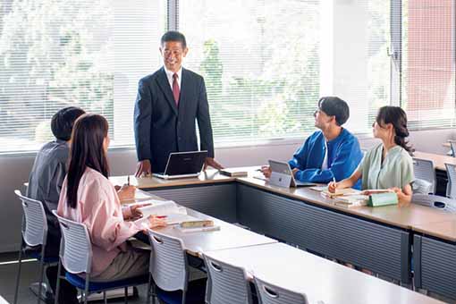 授業、ゼミ、就職活動、論文作成、留学サポート、そこにあるのは、自分の大切な子どもを家族みんなで支えるような真剣なまなざし。時には厳しいことも言います。でも、それは、その学生のことを一途に思っている証しです。そんな環境から学生たちは大切なものを身につけ、大空へとはばたいていくのです。