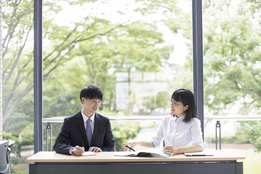 本学の就職率は例年高く、2025年3月卒業生の就職率は99.5%(就職者544名/就職希望者547名:2025年4月1日現在)。キャリアコンサルタントや産業カウンセラーなどの資格を持つキャリア支援センターのスタッフが、その専門性を生かし、学生が進路希望を叶えられるように最良のアドバイスを提供しています。就職支援は一般企業、教員、公務員、医療福祉関係など、学生の進路希望に合わせて実施。採用試験や資格試験の対策講座なども開講し、希望する分野別に的確に指導・支援します。