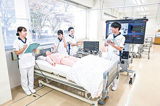 保健・医療サービスの提供の場を体験する「基礎看護学実習」が行われ、さらには、医療分野や福祉分野の基礎知識や情報処理技能なども修得します。