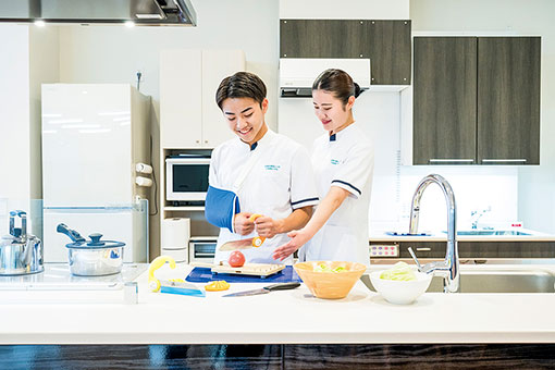 日常の応用的動作の訓練と創作活動や余暇活動などを通して、身体的障害や精神的障害のある人々の自立や社会復帰を支援する作業療法士。本学科では、病院や施設から地域・家庭でのリハビリまでカバーできる、高度で幅広い作業療法を学び、障がいのある人々の視点に立った援助ができる専門職を育てます。専門教育を6つの科目群に体系化し、病院や施設での実習科目も多数開講。専門職としての資質を磨きます。