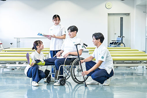 理学療法学科では基礎的な科目に重点を置き、理学療法の基本および基礎知識・技術を徹底的に指導します。また、人の痛みを理解できる心を持った専門職を育てることをめざし、コミュニケーション能力の向上にも力を注いでいます。