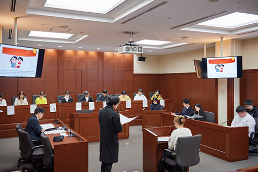 入学して間もない1年次では、学問に対する興味・関心を喚起するため「基礎ゼミナール」が開講されます。大学で学ぶために必要な勉強法やレポート作成、プレゼンテーションなど、実践的なスキルを身に付けます。2年次より「法職演習」で法職資格試験の準備を開始。3・4年次には「専門ゼミナール」で、これまで学んだ成果を担当教員やほかの学生とディスカッションし、より理解を深めます。少人数でのゼミによって高められるコミュニケーション能力や論理的な思考力は就職活動や社会で活躍するうえで重要な要素となります。