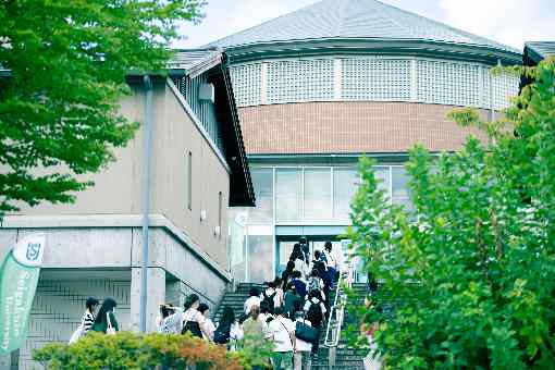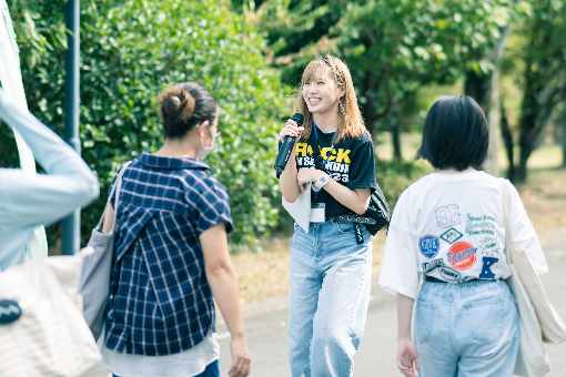 学生スタッフが、緑豊かなキャンパスを案内。食堂や図書館、ボランティア活動支援センター、キャリアサポートセンターなどの施設を、とっておき情報を交えながら説明します。