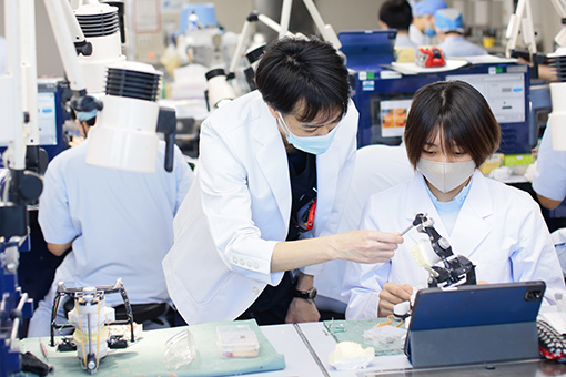 超高齢社会を迎え、人口減少の時代が到来する中で、「いかに豊かな人生を送るか」というQOL(Quality of Life)が重要視されています。歯学科では、歯科医療に関する確固たる知識・技術の修得をベースに、豊かな人間性や感性、広い視野、国際性を身に付けます。そして歯科医療を通じて人々のQOLを向上させ、人々に生きる喜びを感じてもらい、国際未来社会で活躍し得る歯科医師を養成します。