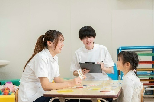言語聴覚学科として、「言語発達学」や「心理学」「音声学」「音声言語聴覚学」など、専門的な知識をそれぞれの先生から指導いただいています。学科ならではの学びとしては「会話演習」というものがあります。会話演習では、地域の方々と話すことを想定し、学科の先生と敬語などに意識しながら会話をするという訓練をします。そこでは先生に自分の癖や敬語の使い方などを指導して頂けるので、実習を意識しながら会話能力の向上に繋がります。
