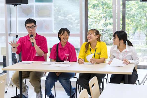 大学紹介・学科説明、模擬授業、学生スピーチ、キャンパスツアー、学科イベント、入試説明、個別相談など -
