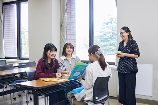 将来、教員をめざす学生のために、児童、生徒の発達、学習、教育に関わる科目が体系的に用意されています。学校教育学総論、教育方法、教職論などの科目を通して基礎的な知識を学習し、各科教材研究、初等教育実習などを通して、教育者としての実践的知識を獲得します。