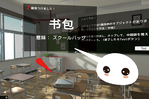 情報学部への進学は決まったものの、学科は定まっていませんでした。工学院大学には入学時に学科を定めない「学部総合」という制度があり、入学後にどの学科に進むかを選択することができます。私は感性工学に基づくコンテンツに興味を持ち、情報デザイン学科の感性情報学研究室に所属しました。ここで中国語の単語を学習するアプリを開発し、3DのVR空間で問題に正解するとキャラクターが収集できるといったゲーミフィケーション*が、学習モチベーションに与える影響を評価・検証しています。