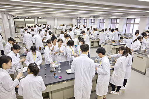 実習/情報科学実習、分析化学実習、病態・治療学実習、有機反応化学実習、物理化学実習、生化学実習、薬理学実習、生薬・天然物化学実習、製剤学実習など