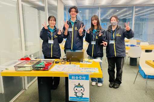 受付では学生スタッフがお迎えし、ご案内 -