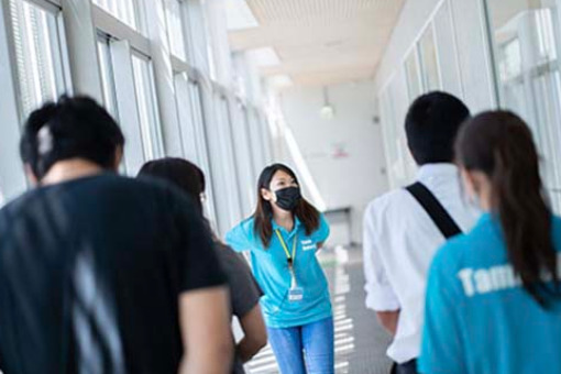 在学生がキャンパスツアーをします -