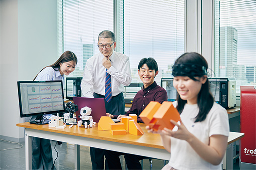 情報化社会の基盤となる「情報システム工学」とものづくりを支える「デザイン工学」。この2つの技術を縦横無尽に駆使して新たな価値を生み出すことができる技術者、実業家を育成します。人工知能技術があらゆる産業を席巻し、人間の生活様式と産業構造が変貌しつつある中で、人間科学と人工知能から生まれる未来社会をデザインし具現化する力を養います。
