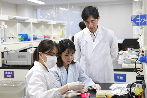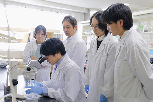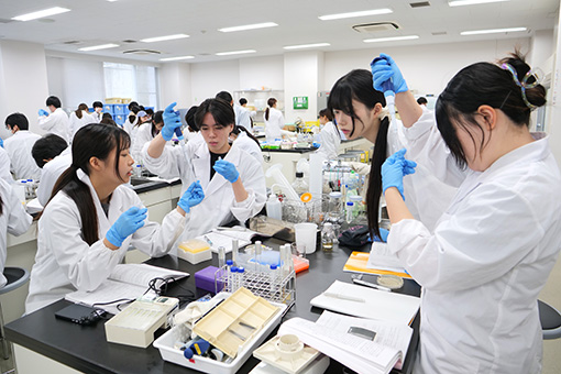 生命科学部は低学年時から実習に取り組み「理解」「応用」「実践」を学び、身に付けます。