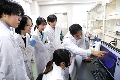 難病やがんなどの病気のしくみや原因、免疫や再生医療について学びます。生命科学と医療現場をつなぎ、病気の新しい治療法・診断法の開発をめざして、人の命と健康を支えることができる人材をめざします。