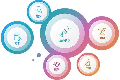 ・医学・薬学・農学・工学・理学と幅広い領域を有する生命科学から自分に合った学問・研究に出会える