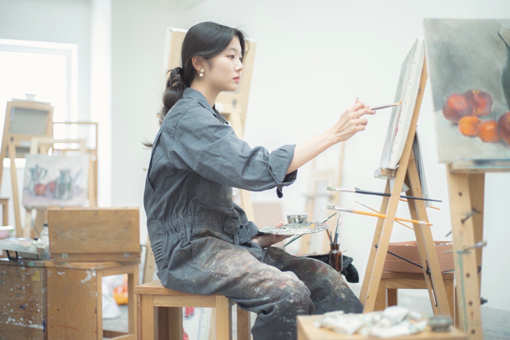 毎日大学の絵画アトリエで制作しています。基本的に制作のための実習時間は3~4限と決められていますが、それ以降も最大21時までアトリエに残って制作することが可能です。私の大学生活の大部分を占めるアトリエでの時間は、私の人生においても大切な場所になると思います。ちなみに、アトリエは光源に重きを置いた設計のため天井が高くよく音が響くので、他に誰も残っていないとき、こっそり歌いながら絵を描くのが大好きです。