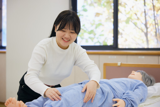 社会福祉士国家試験受験資格に加え、介護福祉士国家試験受験資格も取得可能です。介護福祉士とは、体の不自由な高齢者や障害者の問題を解決し、その人の望んでいる生活を実現するための支援をしながら、リーダーとして専門的な援助や介護現場の運営・改善も行うことのできる専門職です。本コースは1年次にコース選択をすることが必要です。卒業生は、高齢者福祉施設、医療機関などで活躍しています。
