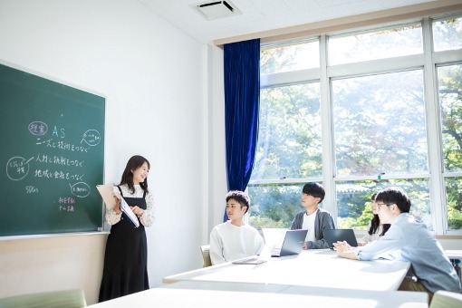 4学部の学生がそれぞれの専門性を基に、企業が直面している社会課題を協働して探求し、企業担当者に発表する産学連携型の授業です。異なる学部の学生が一つのゼミで学ぶことで、横断的なアプローチによる課題解決の提案を行うとともに、社会で求められる「多様な視点」を身につけることを目的にしています。専門分野以外の知識を得られるだけでなく、企業研究にもなり、キャリア形成を考えるうえでも役立ちます。