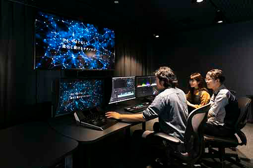 キャンパスには、AIやVR、モーションキャプチャー、ワークス テーションなど、最先端のソフト・ハードが完備されています。プロの制作・開発現場と同じハイスペックな環境で、産業界と連携した高度な実践教育を受けることができるため、即戦力や実践力、応用力が身につきます。