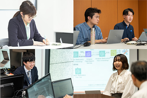 SE・AI・セキュリティ・ロボット・CG・ゲームの6つの分野から、自分の“好き”を見つけ、実際にアプリ開発などの実践を通じて学ぶことで、“好き”を仕事にすることをめざす4年制大学です。1年次は広く業界を体験し、2年次に希望分野を選択します。文系やプログラミング未経験者も多く、仲間と一緒にゼロからプロをめざすことができます。