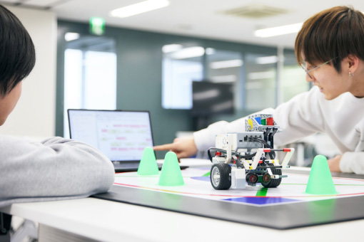 数理・人工知能コースでは、知能情報学をベースとし、数値解析、ゲーム理論、最適化問題、機械学習、データサイエンスも扱います。ロボット制御・IoT・組み込みシステムなどへの応用分野とともに、ハードウェアも扱うのが特徴です。