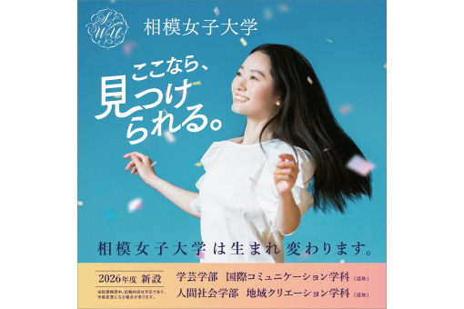 2026年4月、相模女子大学は新たな一歩を踏み出します。学芸学部 国際コミュニケーション学科〈仮称〉*と人間社会学部 地域クリエーション学科〈仮称〉*が加わり、3学部10学科に生まれ変わります。新しい学びの場で、あなたの可能性を広げてみませんか?やりたいこと、なりたい自分を見つけるための多様なプログラムが待っています。詳細は大学Webサイトをご覧ください。