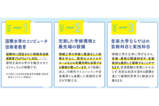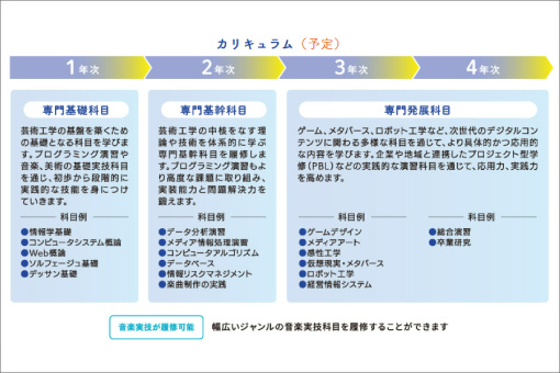 ●情報工学を学びながら、音楽大学ならではの科目も履修できる
