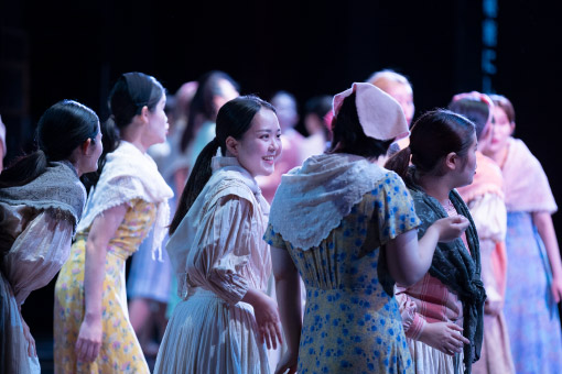 本学では毎年「学生による授業アンケート」を実施しており、2024年度の授業アンケートでは、全体(大学・短大)の98.9%が実技レッスンに満足しているという回答結果でした(「そう思う」「少し思う」の合算値)。また、実技レッスン以外の授業科目についても、全体(大学・短大)の満足度96%と、学生から高い評価を得ています。アンケート結果は授業担当教員にフィードバックし、授業改善につなげています。