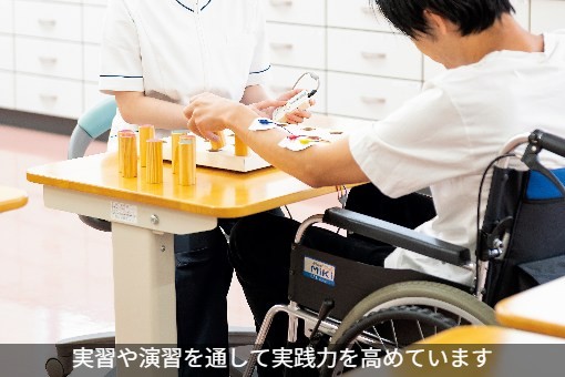 講義だけでなく、実習や演習を通して実践力を高め、将来現場で信頼される作業療法士になれるよう努力しています。