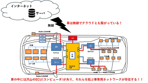 皆さんが普段乗っている車には、ECU(車載コンピュータ)と呼ばれる小さなコンピュータが多数搭載されており、それらが連携して走る・曲がる・止まるといった重要な動きから、窓やドアの開閉、カーナビ操作までを制御しています。ECUが正しく情報をやり取りするために、車には「専用ネットワーク」が備わっており、カーナビ更新から自動運転のサポートまで、現代の自動車には欠かせない存在です。その一方で、自動運転では、「ブレーキへ信号が届かなかったので停止できなかった」といった事態は絶対に許されません。そのため車内ネットワークには、普段のインターネット以上に高度で確実な通信制御が求められます。これは自動運転に限らず、将来さらに身近になるであろう遠隔操作ロボットなどにも共通する技術です。生活がよりデジタルで便利になるほど、通信が途切れず正しく届く「通信の信頼性」は一層重要になっていきます。