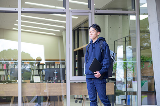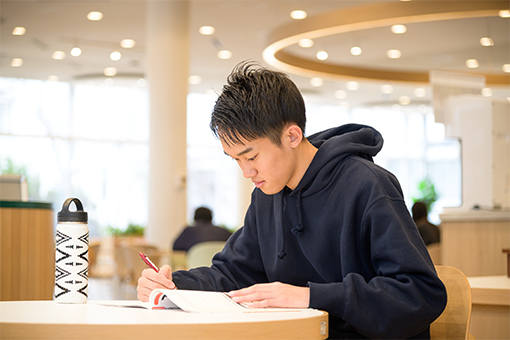 「アカデミック・スキルズ」という授業では、今の社会問題について自分でテーマを決めて調べ、その結果をプレゼンしました。図書館は文献が豊富にあり、情報収集にはぴったりです。自習スペースを活用しながら、課題や発表の準備を進めることもできます。