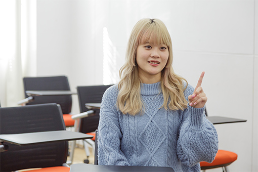 高校生の時にオーストラリアへ5か月間留学したのですが、大学生になったらもっと長く海外に滞在したいと思い、“留学費用全額支援”制度がある名古屋外大を選びました。航空業界に興味をもっている学生が集まる「エアライン業界研究グループ」もあり、学祭の模擬フライトでCAアナウンスやドリンクサービスを行い、学部・学科問わず同じ目標を持った人たちと一緒に意識を高め合うことができます。数ある学科のうち国際教養学科を選んだ理由は、航空業界や社会学、メディア、ツーリズムなどさまざまな分野で働いていた先生がいらっしゃるからです。サポートも手厚く、先生方が面談してくださるので、将来について相談しながら決めることができます。ただ英語を話せるようになりたい、だけではなく、英語を話すことができるうえで、英語をツールとして何かをしたいと思い、それには国際教養学科がピッタリでした。
