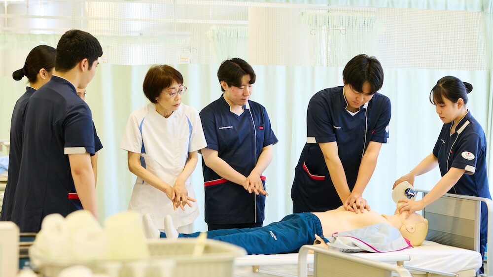 災害看護や国際救援看護論を学び、トリアージ訓練や救護活動総合演習で実践力を養成。海外研修や語学学習でグローバルな視野を広げ、地域連携と防災教育を推進する環境を整えています。