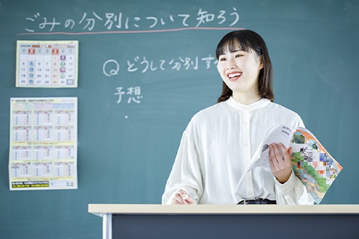 小学校において幼児教育からの連続性を意識し、心と体を育むことができる教員をめざします。各教科の授業の展開方法を学ぶと同時に、指導計画の立案、授業の進め方、学級経営に対する姿勢、ICTを活用した指導法など教育現場で求められる具体的スキルを修得。2年次には大学近隣の小学校で1週間の教育実習を経験します。
