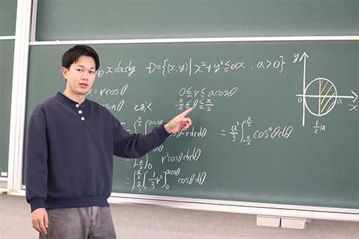 将来は中高の数学教員をめざしています。専門教科に絶対的な自信を持って教えられる教員になることが目標です。知識を持っているだけでなく、生徒にいかに理解してもらえるかが重要であり、数学については自分が納得するまで勉強し続けることを大切にしています。時間をかけてしっかり落とし込むことで、人に教えるときにも自信を持って伝えることができます。