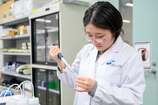 バイオサイエンス分野への関心は、大学に進学してから芽生えました。遺伝子や微生物、植物の機能など、幅広い知識を身に付けていく中で、生命現象の奥深さを理解できました。現在は、植物や環境中に存在する微生物の特性、さらに遺伝子組み換え技術について学んでいます。