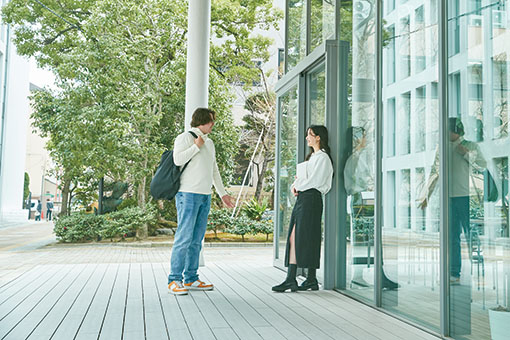 京都外国語大学は、少人数クラスの授業スタイルなので、先生との距離が近く、分からないことがあっても、質問しやすい環境に魅力を感じました。ネイティブの学生も多く学生同士の相互学習や、発音や文法など専門的な内容について先生から細かく指導を受けることができます。