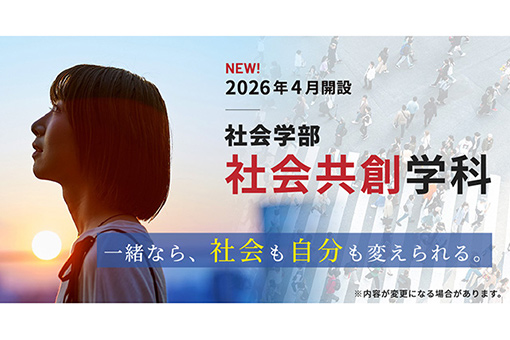 2026年4月、これまで本学が培ってきた幅広い人材育成を礎に、「人と人」「人と地域」「地域と世界」をつなげ、社会に「新しい価値」を生み出す「社会学部 社会共創学科※」が新たに誕生します。