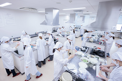 1年次生の今は、「調理科学実習」という授業に取り組み、調理について科学的に勉強しています。あわせて2年次生から本格的に始まる専門分野の座学・実習・実験に向けての基礎科目にも取り組んでいます。