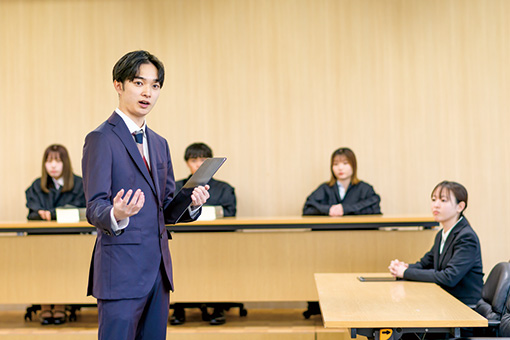 司法試験・法科大学院、準法曹(専門資格)、専門職公務員、法学研究科(大学院)進学の4モデルを設置。法曹のほか、司法書士や行政書士、国税専門官などの法律専門職をめざします。