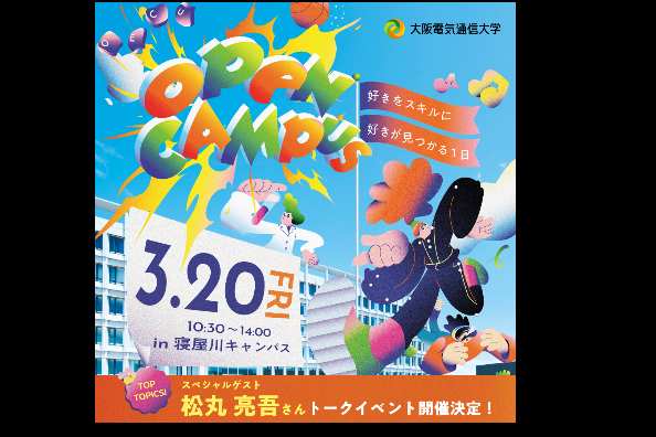 3月は、スペシャルゲスト松丸亮吾さんのトークイベント、卒業生トークセッション、学食体験、在学生が取り組むプロジェクト紹介など実施。大阪電気通信大学をよく知るためにも、ぜひご参加ください。お待ちしております!