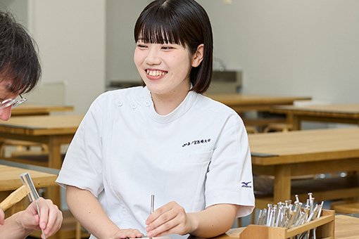 進路に迷っていた高校2年生の冬頃、誰かの役に立つ仕事がしたいなと思いました。姉に相談すると、「作業療法士がいいんじゃない」と言われ、作業療法士について調べるうちに興味を持ち始めました。「リハビリ=歩く・動く」と思っていましたが、作業療法士は「その人らしい暮らし」を支える仕事だと知って強く惹かれるようになり、料理が好き、ペットと散歩したい、もう一度好きな趣味を再開したいなど、「その人らしい暮らし」を大切にできることに魅力を感じ、作業療法士をめざすようになりました。