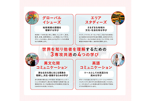〈世界を知り他者を理解するための3専攻共通の4つの学び〉